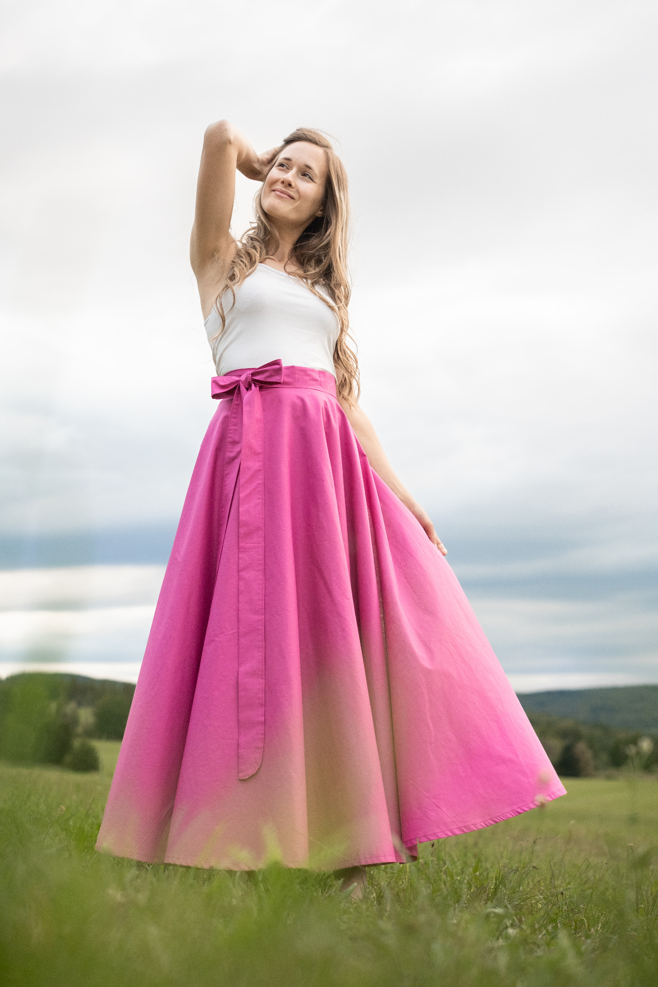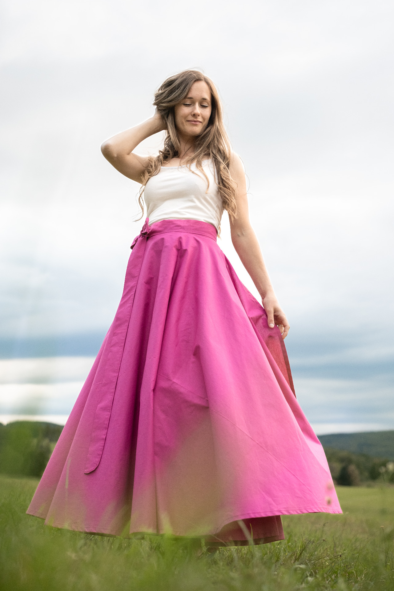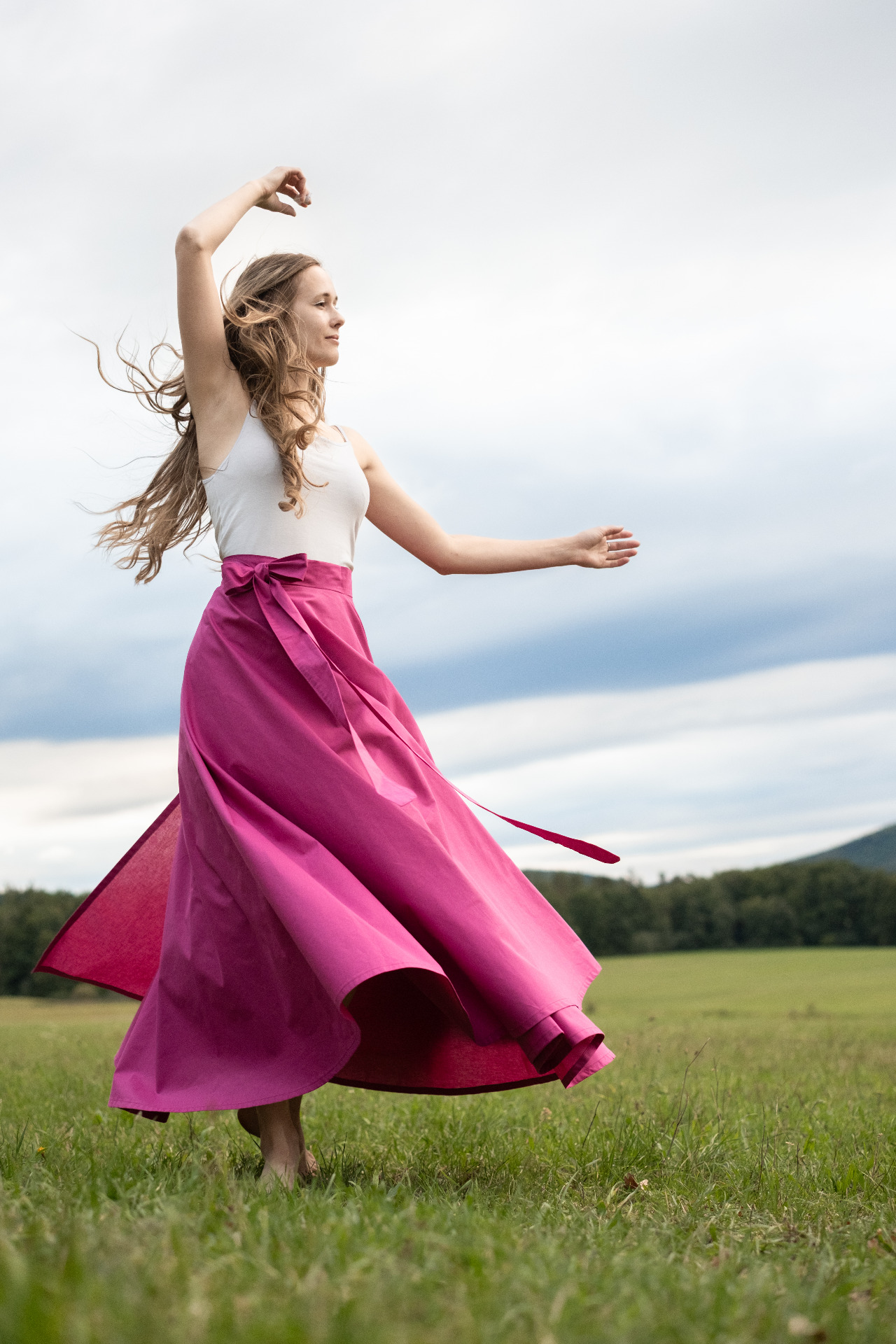 Zavazuje se páskem, který můžete uvázat buď vpředu nebo vzadu, obojí vypadá moc pěkně.