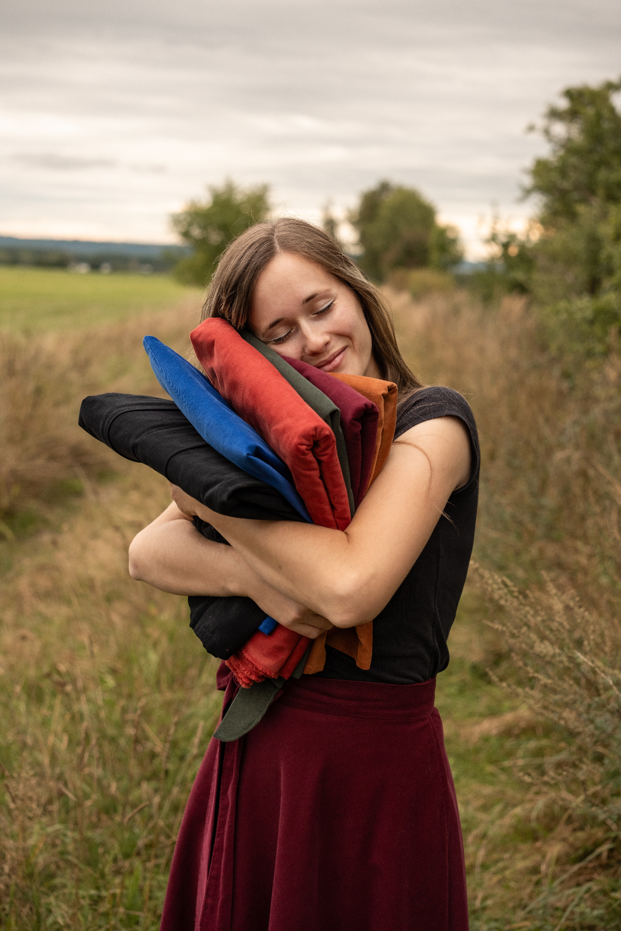 Zavazuje se páskem, který můžete uvázat buď vpředu nebo vzadu, obojí vypadá moc pěkně.